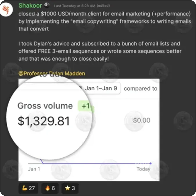 After implementing lessons from the Freelancing Campus, he scaled it to generate $10k-$15k per month.
